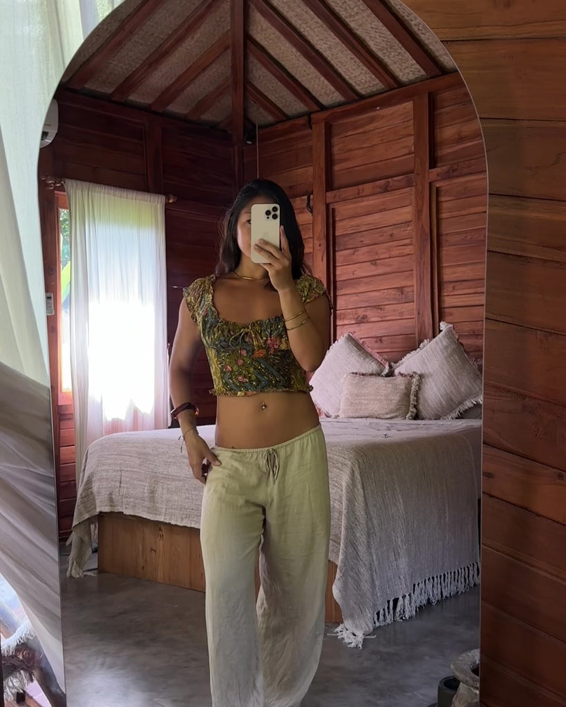 A feminine staple design in our signature batik. This puff cropped top features a gathered bust, flutter sleeves, and a soft elasticated back for an easy, flattering fit.