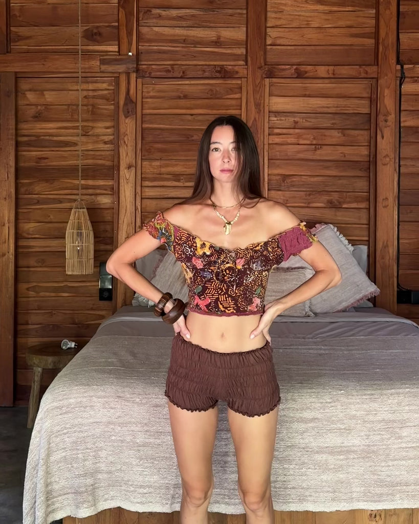 A feminine staple design in our signature batik. This puff cropped top features a gathered bust, flutter sleeves, and a soft elasticated back for an easy, flattering fit.