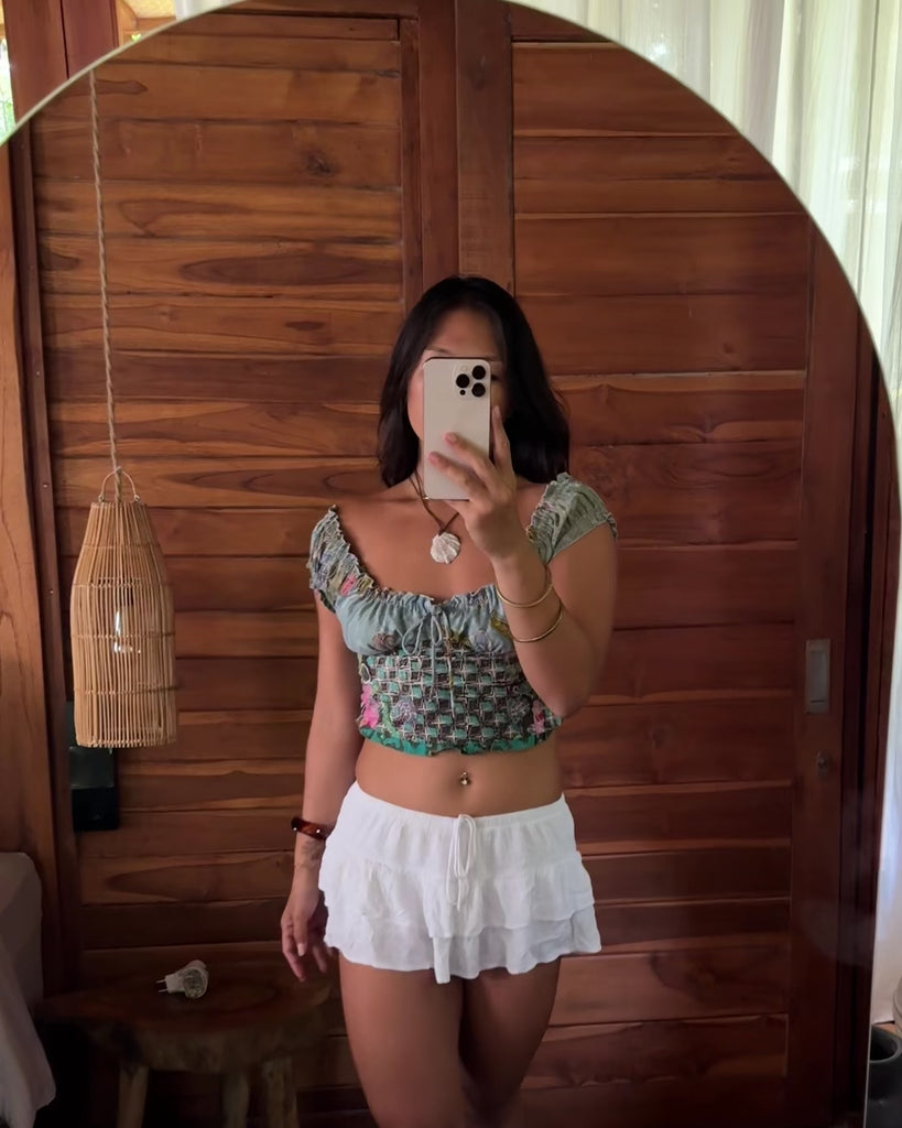A feminine staple design in our signature batik tulis. This puff cropped top features a gathered bust, flutter sleeves, and a soft elasticated back for an easy, flattering fit.