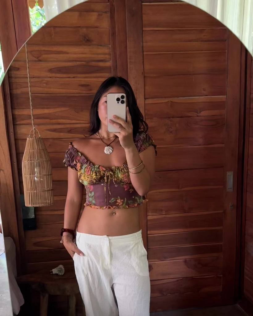A feminine staple design in our signature batik. This puff cropped top features a gathered bust, flutter sleeves, and a soft elasticated back for an easy, flattering fit.